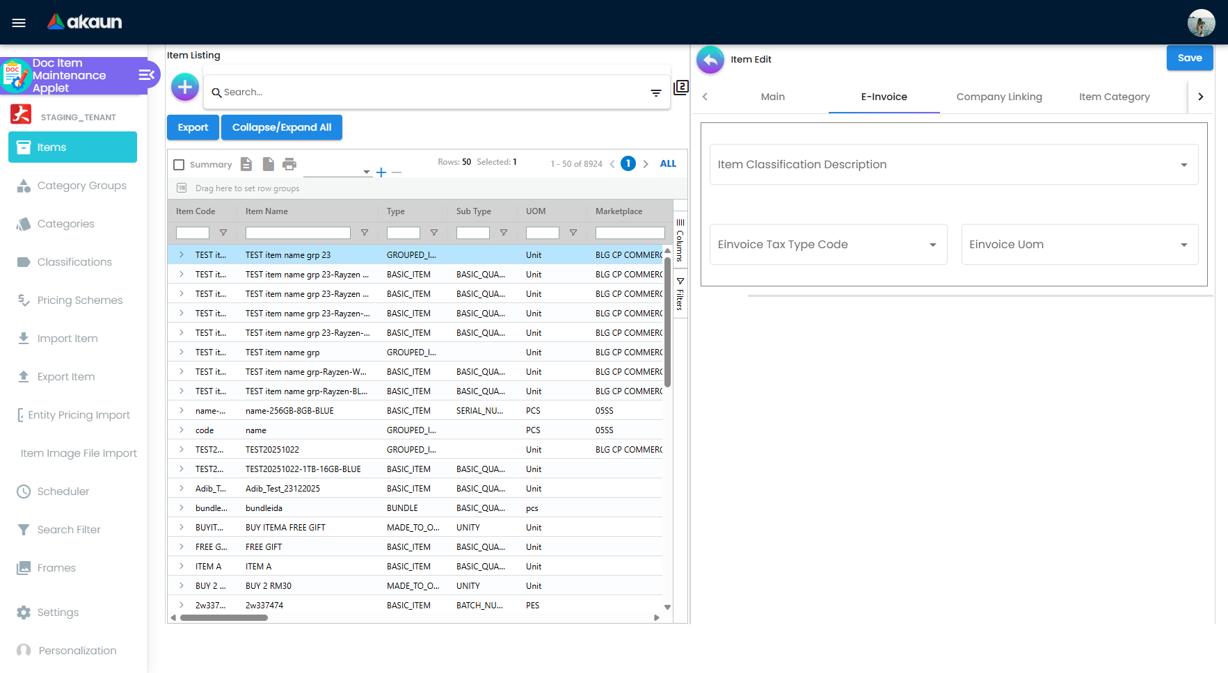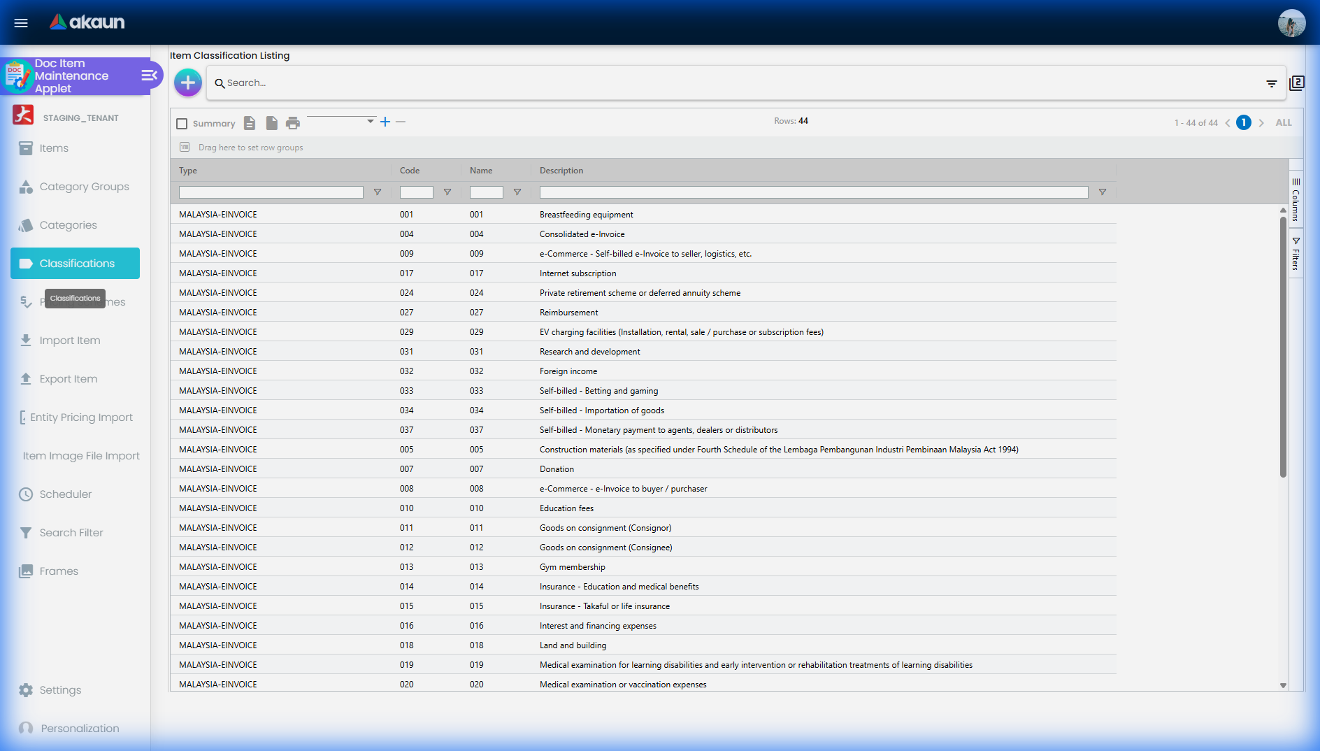 This tab is for MSIC, Tax type, and UOM. Here users can do e-invoice classification.