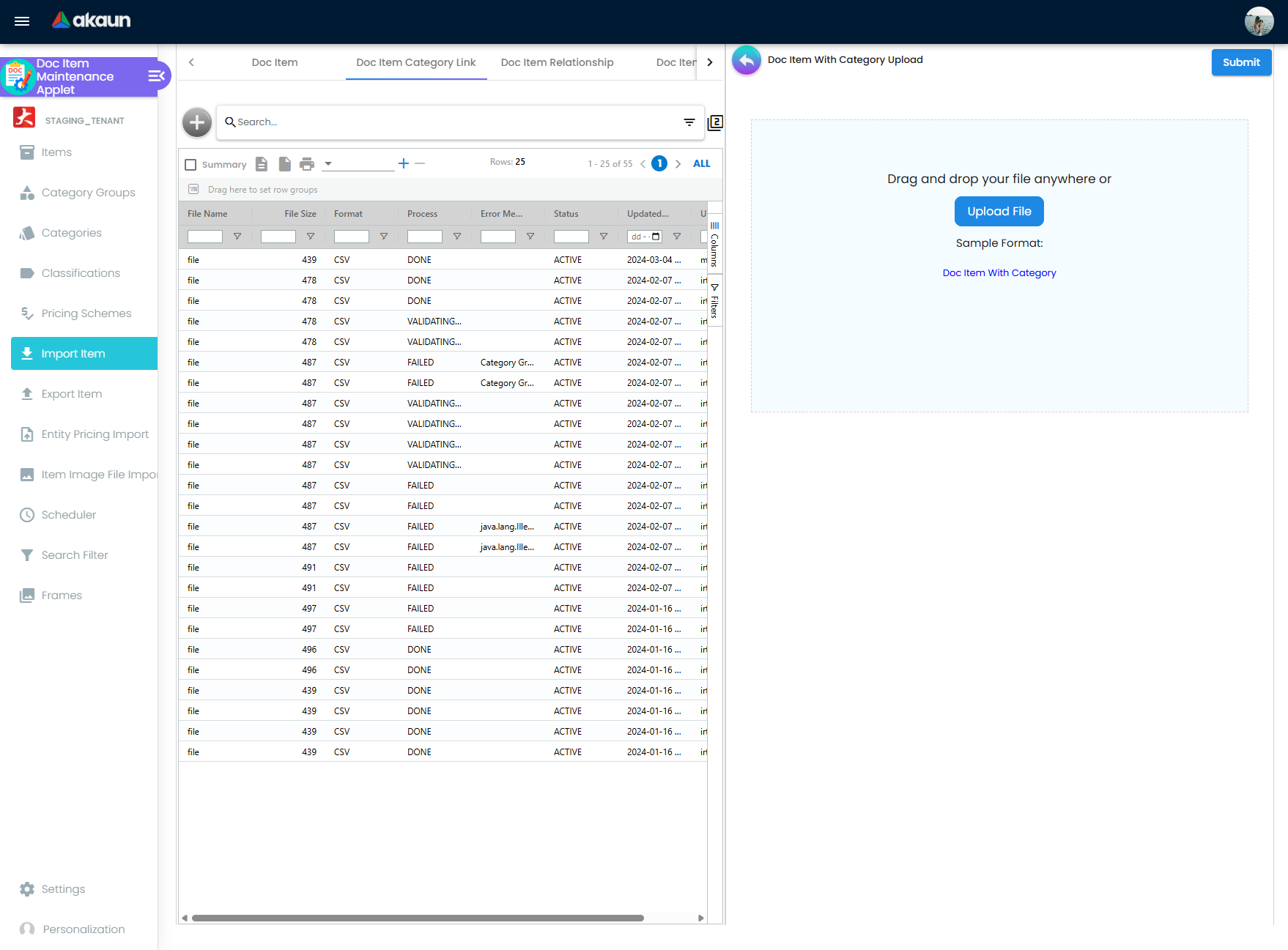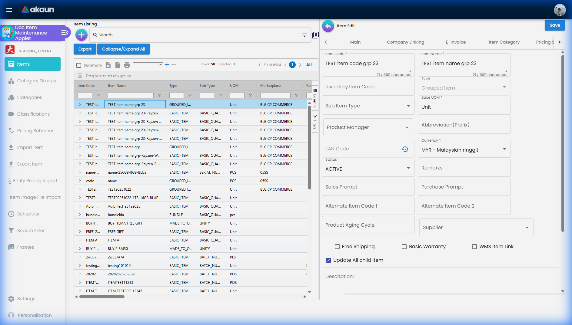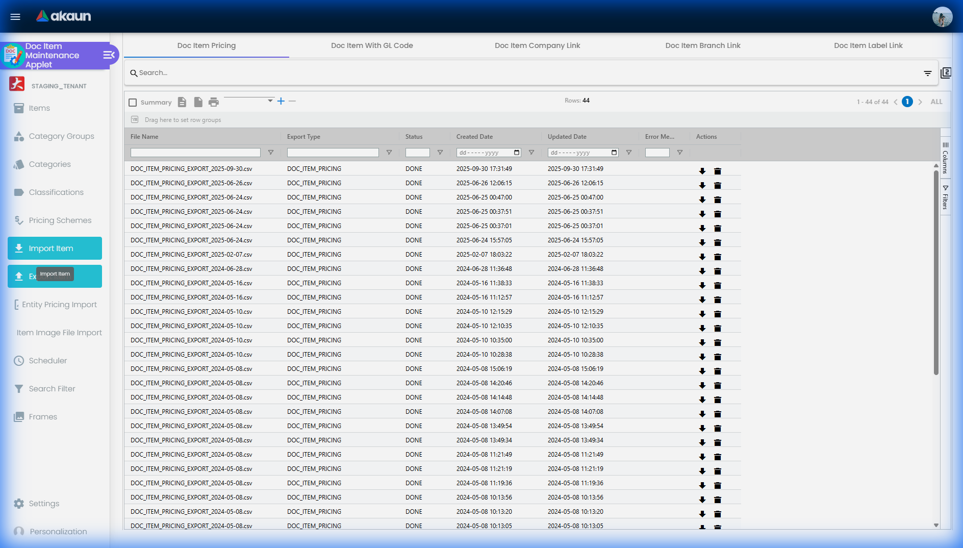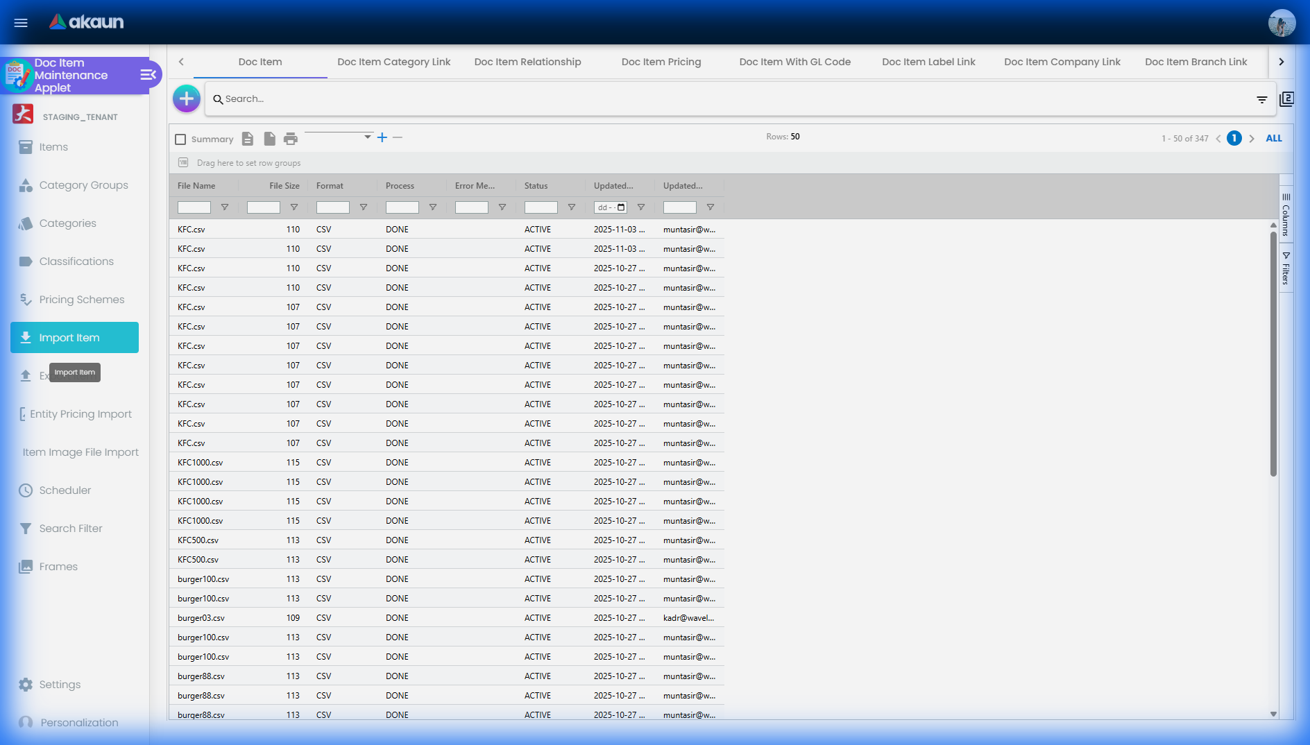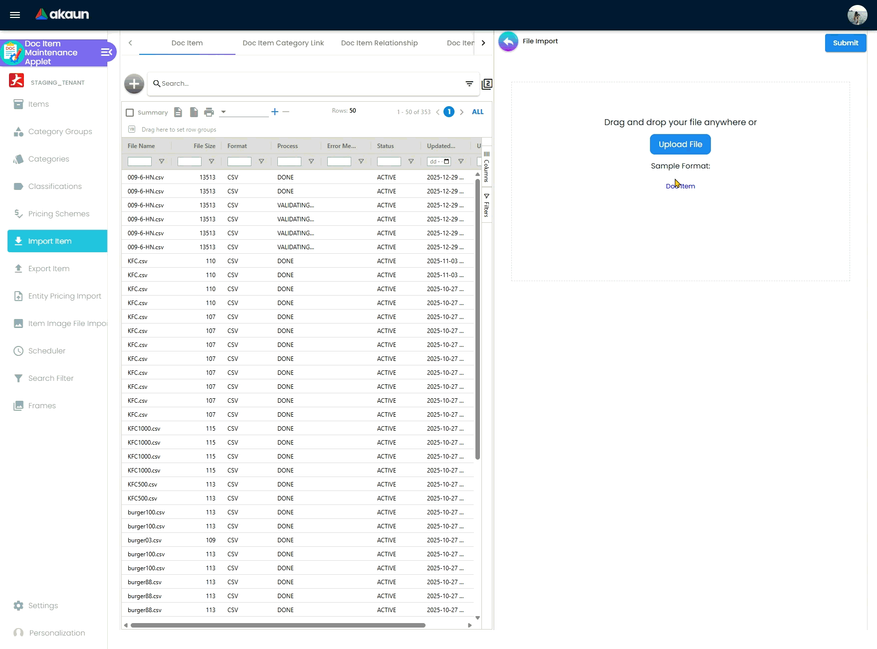 The Doc Item Maintenance Applet serves as a centralized hub for managing and maintaining essential item information. Designed to support efficient data handling, it enables users to create and update item records, which form the foundation for transaction creation across different modules. By organizing item data into a comprehensive master record, this applet enhances operational efficiency, data accuracy, and ease of access across departments.