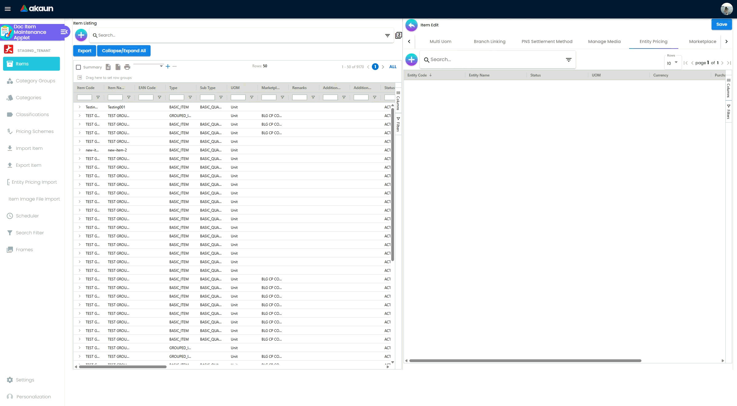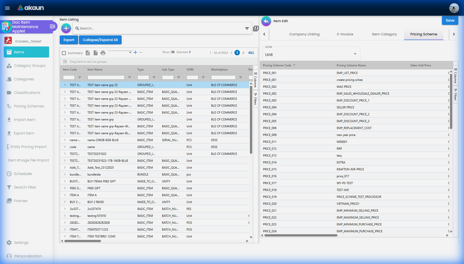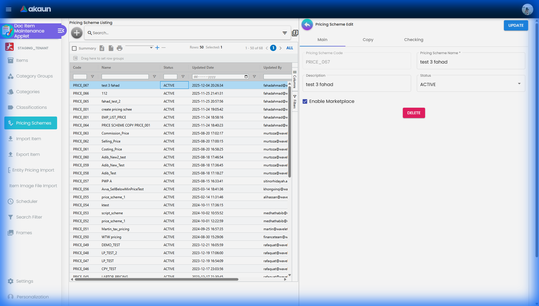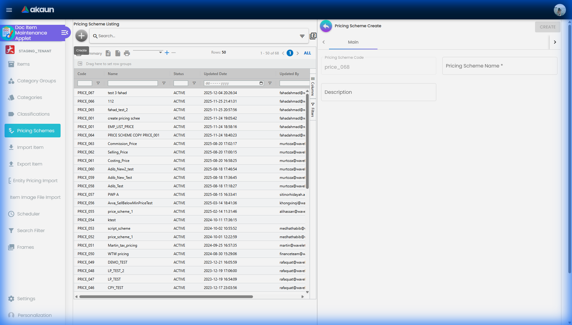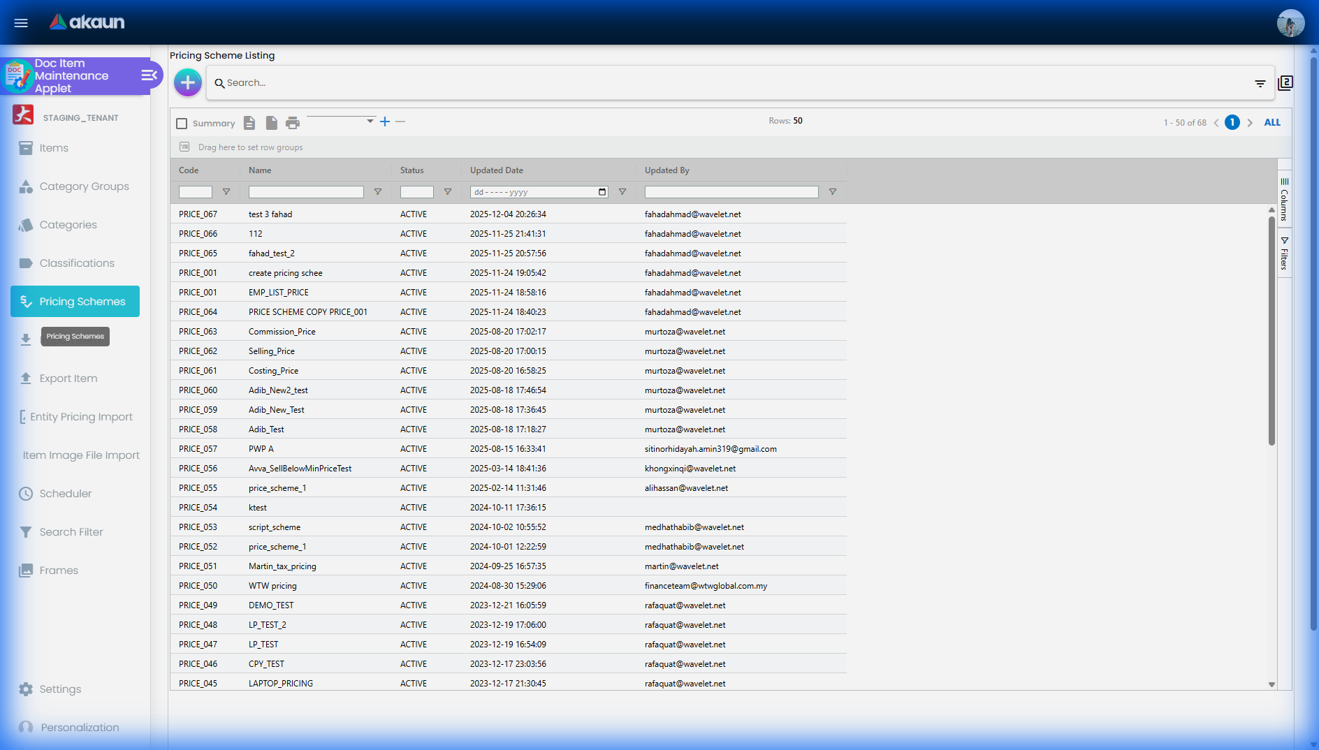 - Pricing Scheme: Allows you to input specific prices (min, max, promotion, before/after tax) for the schemes set up in the main menu.