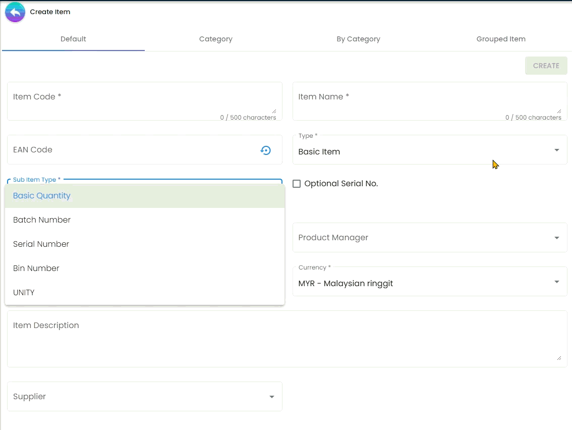 - Item Code - Unique identifier for the item, Once Item Code is created it cannot be edited