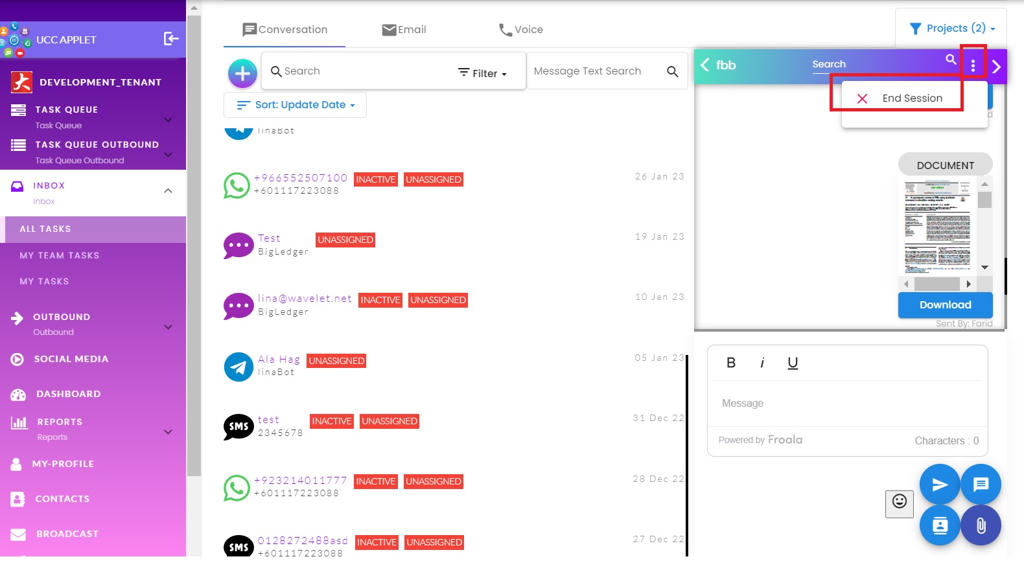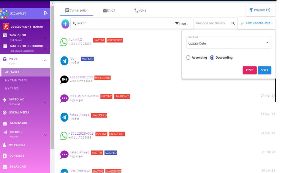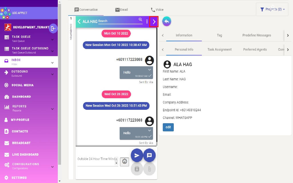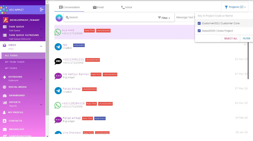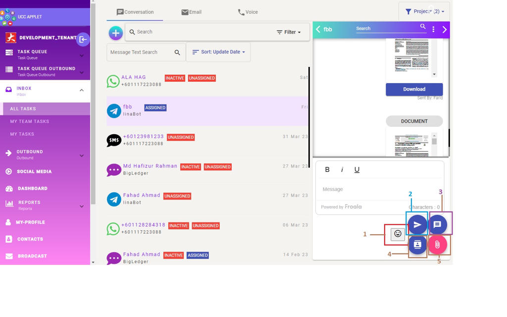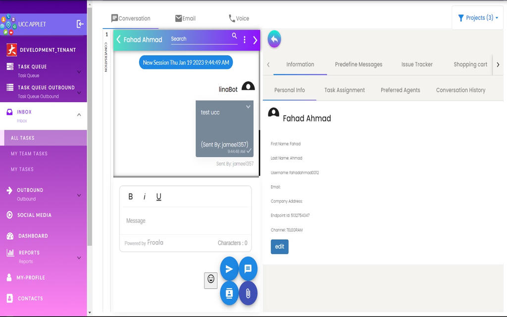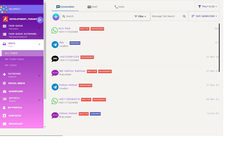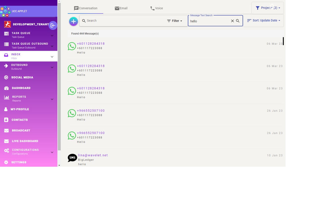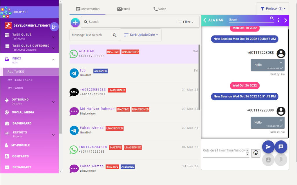 UCC Applet handles omnichannel conversations and provides a superior customer service experience by allowing users to send and receive messages from multiple messaging platforms in a single, integrated interface. Whether customers reach out via WhatsApp, Telegram, Email, SMS, Facebook Messenger, or Voice calls, all communications flow into UCC where agents can respond efficiently without juggling multiple tools or losing context.