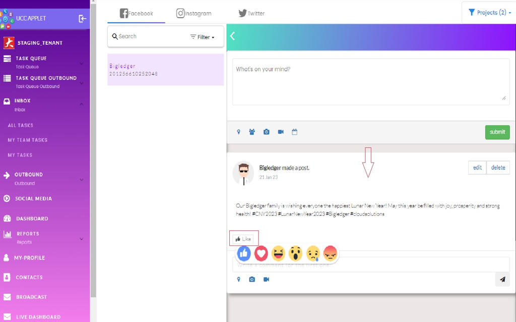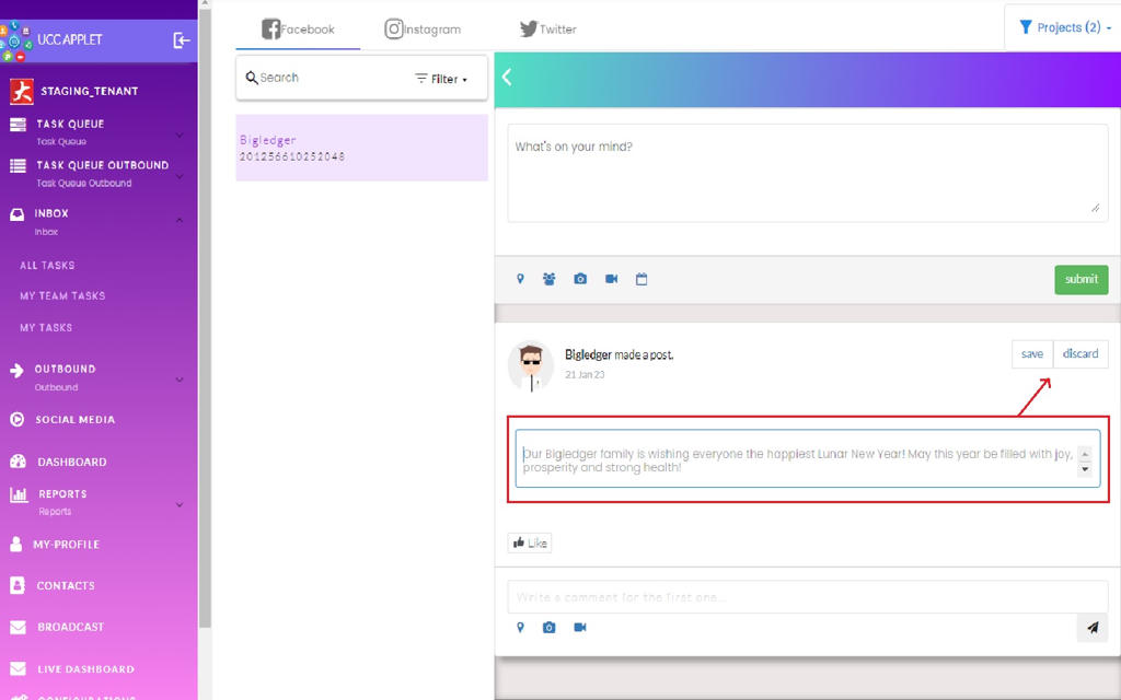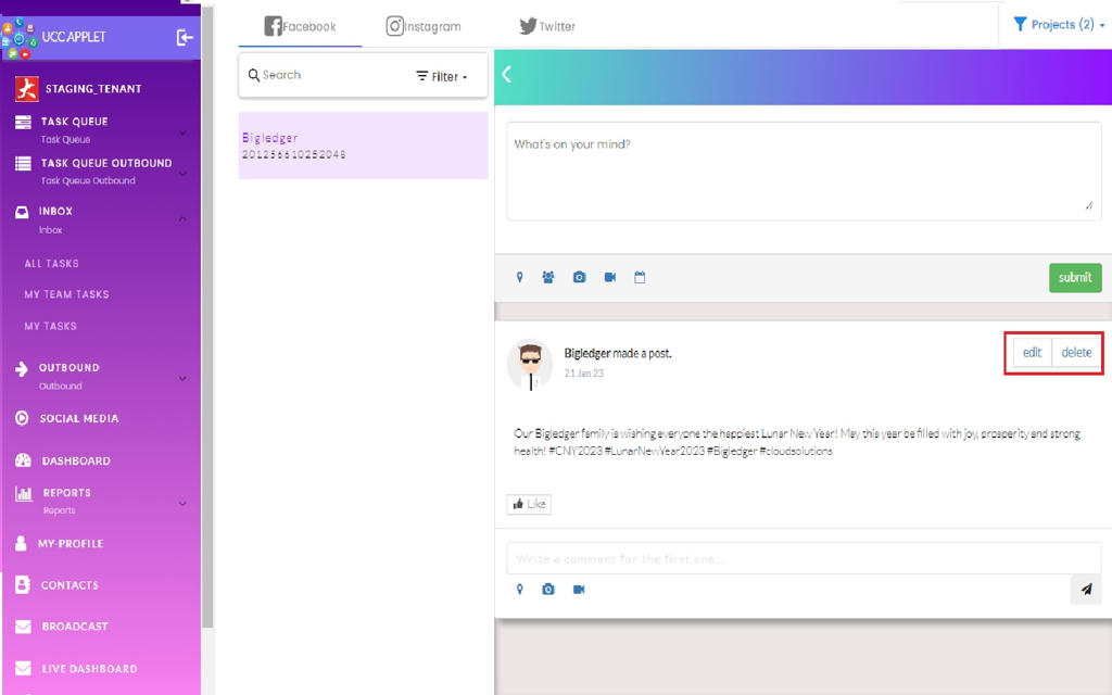 Social Media: Integrated social media management allowing direct posting, editing, and monitoring of social content without leaving UCC.