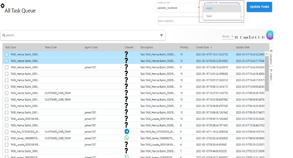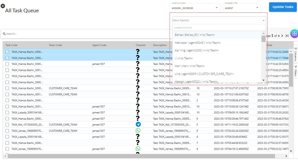 Once you’ve selected the worker type, the system will display a list of available agents or teams based on your selection. Choose the appropriate agent or team from this list to complete the assignment. All selected tasks will then be assigned to your chosen worker.
