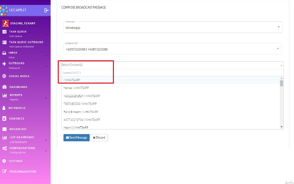 - Manual Selection: For smaller, targeted broadcasts, select contacts one by one from your UCC contact database.