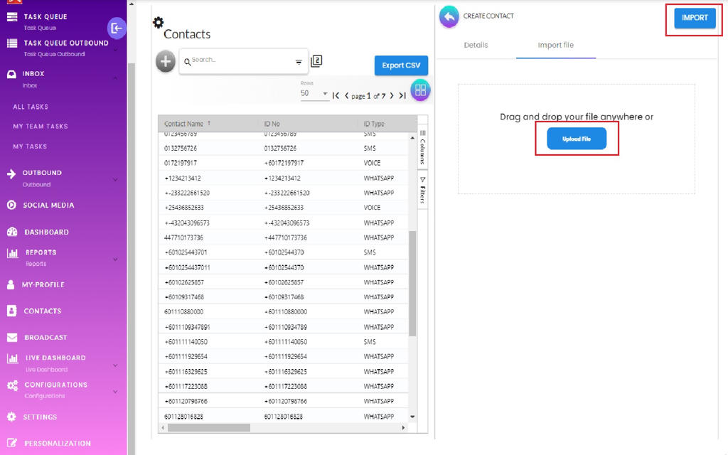 Bulk contact import enables you to add large numbers of contacts efficiently from a CSV file.