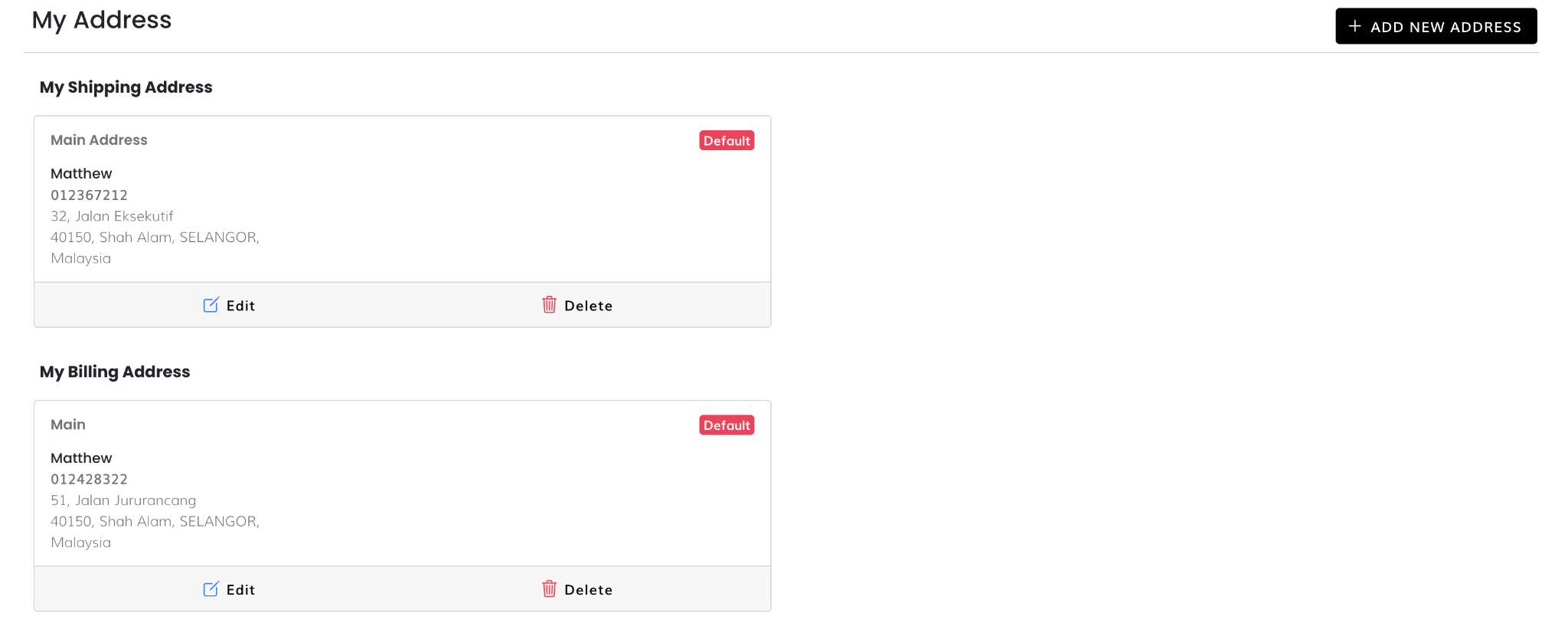 - Add New Address: Users can create new shipping addresses directly within the My Shipping Address Widget.