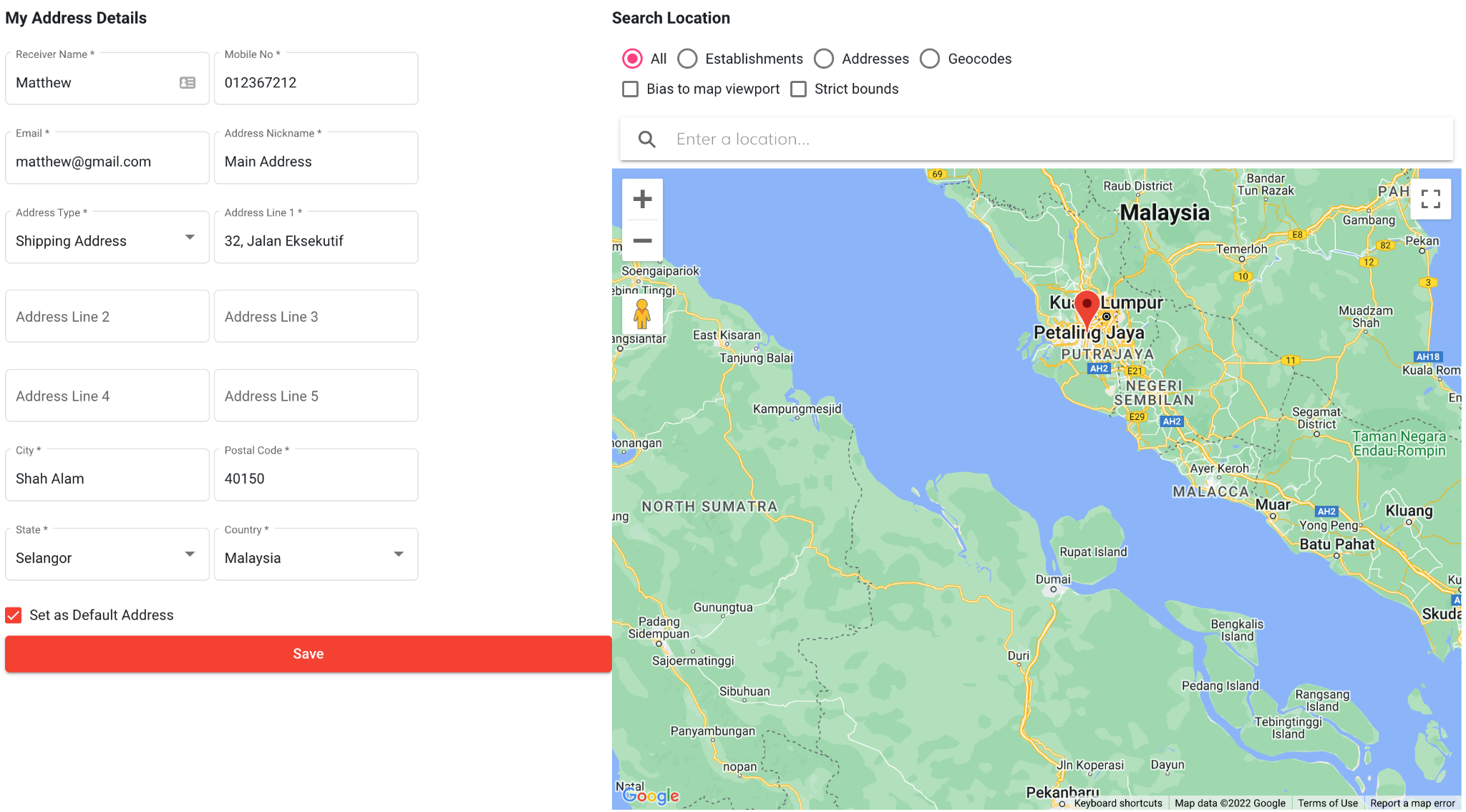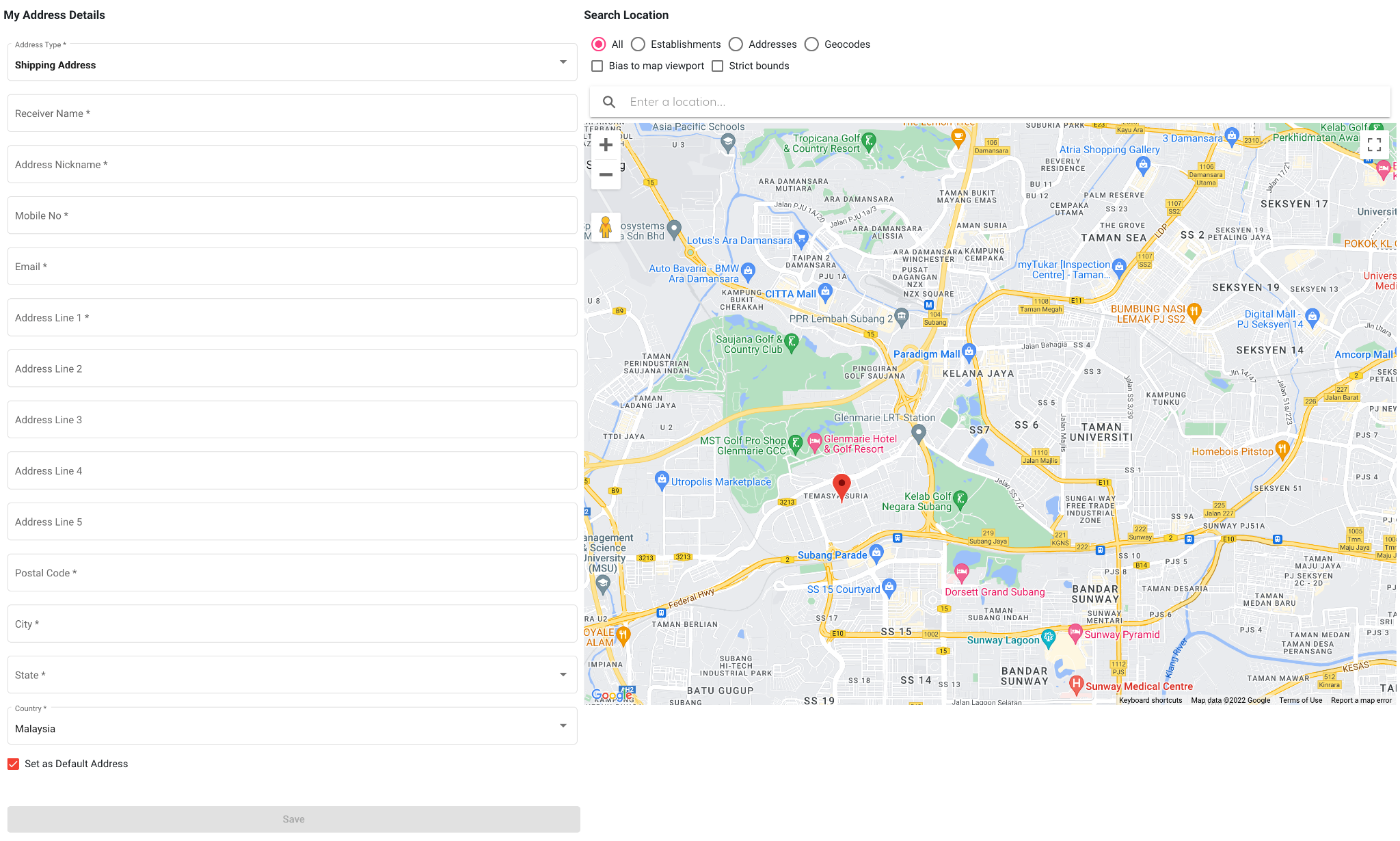 - Set Default Address (Optional): Enables users to designate a preferred shipping address for future purchases, pre-populating the shipping information during checkout.
